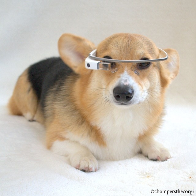 Cy-borgi. The next generation of Corgis. 🐺😎 #chompersthecorgi #cyborgi #googleglass #glassexplorer