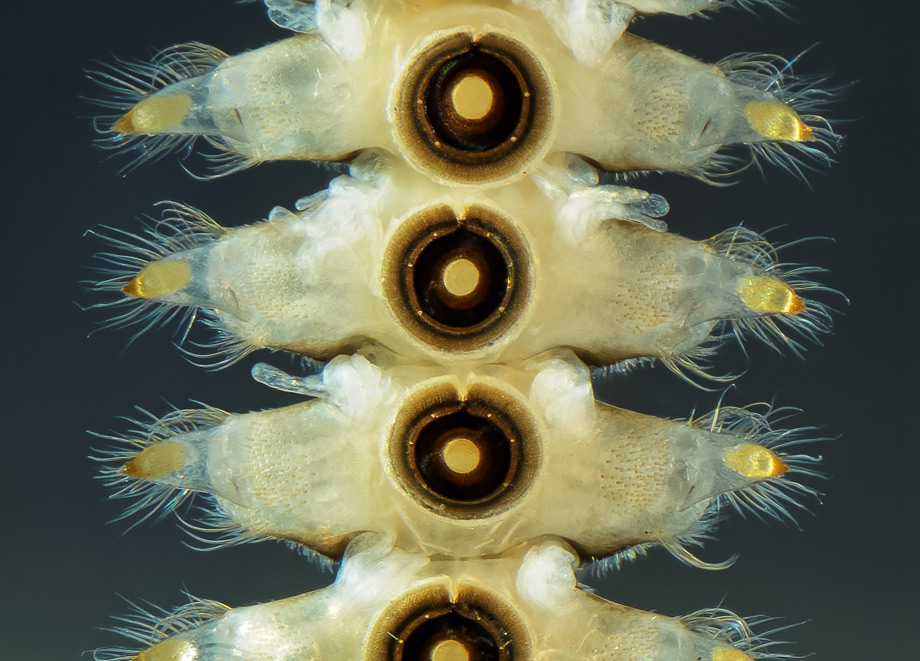 Abdominal segments of Diptera blephariceridae larvae, 40X. l Fabrice Parais