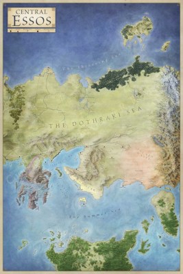 The map of Central Essos for George RR Martin’s series A Song of Ice and Fire, showing the Dothraki Sea and the the blasted lands of old Valyria all the way tothe south to Sothoryos