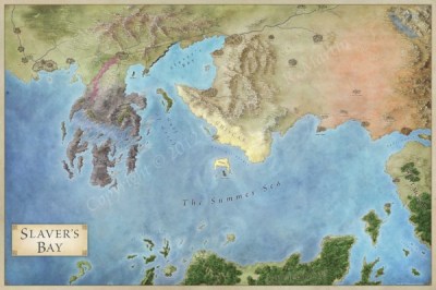 Map of Slaveer’s Bay for George RR Martin’s series A Song of Ice and Fire, detailing Quarth, Mereen, Astapor and the Dragon Roads of old Valyria