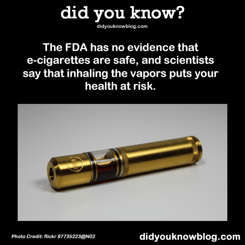 The FDA has no evidence that e-cigarettes are safe, and scientists say that inhaling the vapors puts your health at risk.